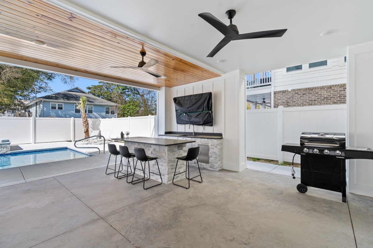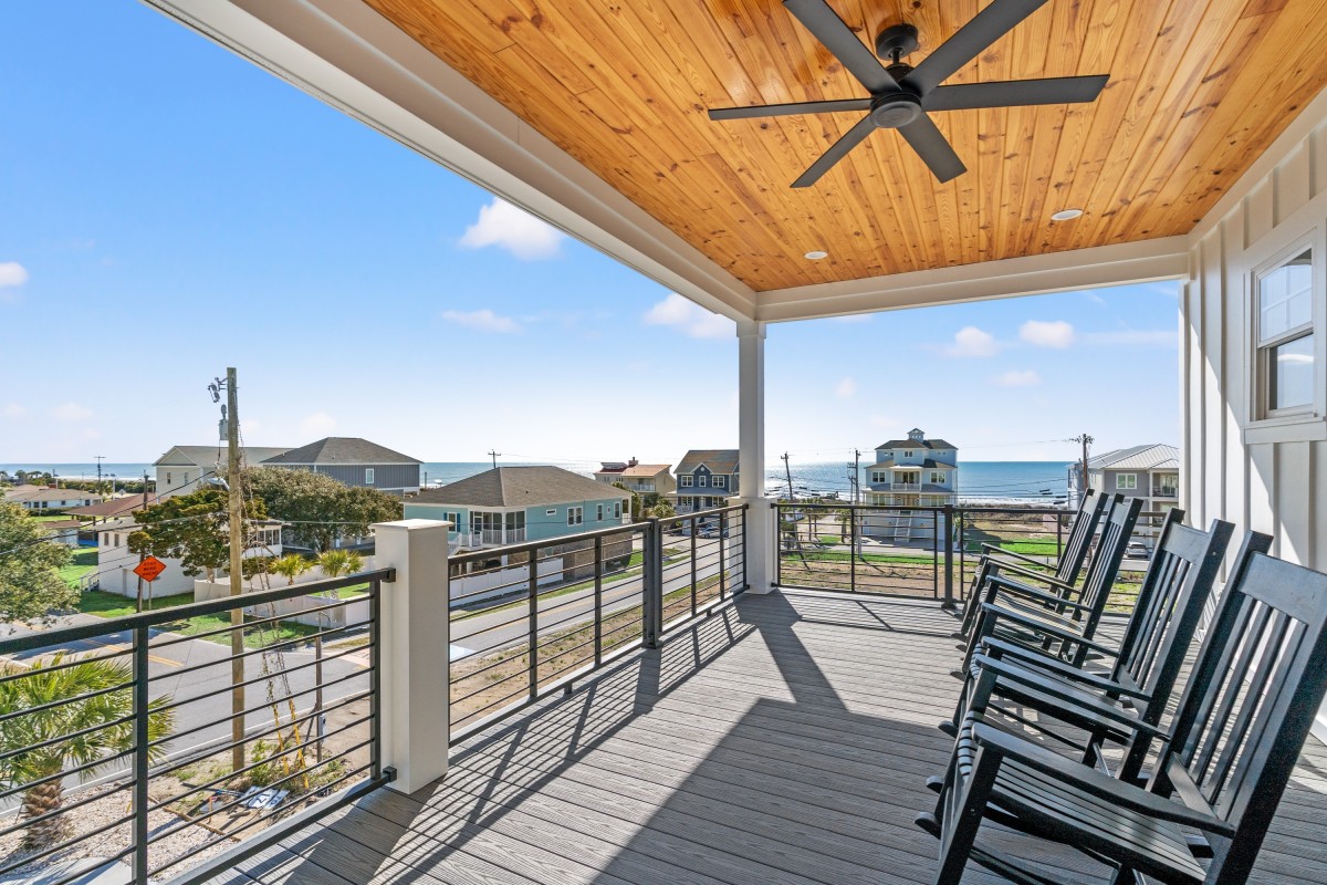 Outside, enjoy gentle ocean breezes from one of the two balconies, or gather around the picnic table while grilling dinner under the stars. The home includes central air, washer and dryer, multiple flat-screen TVs, and plenty of paved parking—all designed for comfort and convenience near the beach.