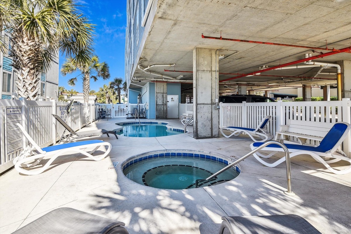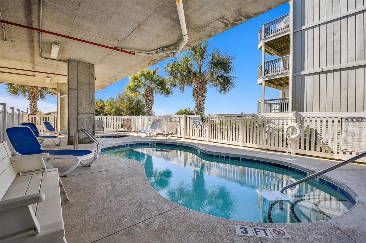 The fun continues outside at Ambassador Villas 202. There are charcoal grills and picnic tables so you can cook up your fresh catch. Fish for your dinner from the shore or a nearby pier, or pick up some fresh local seafood at the market. There’s also a swimming pool and a hot tub for relaxing.